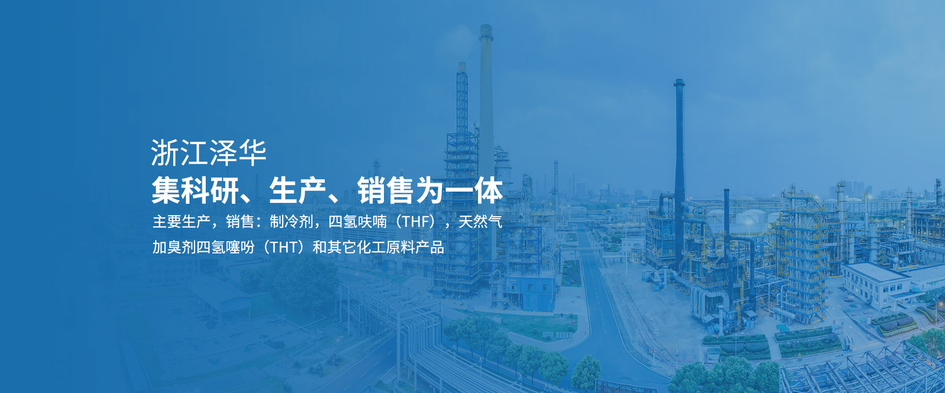 浙江澤華氟化工有限公司地處素有“四省通衢”的千年古城,國家化學工業基地——浙江衢州。是一家集科研、生產、銷售為一體,擁有自主進出口權的綠色環保型新興企業。銷售生產的四氫噻吩(THT),四氫呋喃(THF)及各種系列冷劑產品。規格齊全、品質上乘。